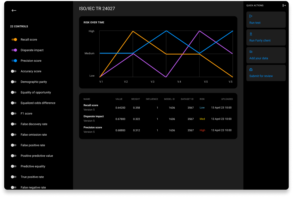 Fairly's continuous monitoring platform applies policies, testing, and reporting to keep enterprise models under control.